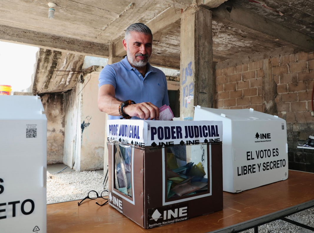 Al emitir su sufragio, Torres subrayó el carácter inédito de esta jornada electoral, que por primera vez permite a las y los mexicanos elegir directamente a juezas, jueces, magistradas, magistrados, ministras y ministros del Poder Judicial.