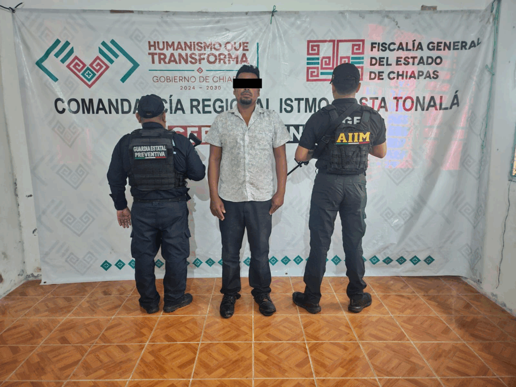 La Fiscalía General del Estado y la Secretaría de Seguridad del Pueblo ejecutaron una orden de aprehensión en contra de Jorge “N” como presunto responsable del delito de pederastia agravada, por hechos ocurridos en junio de 2025, en el municipio de Acacoyagua.