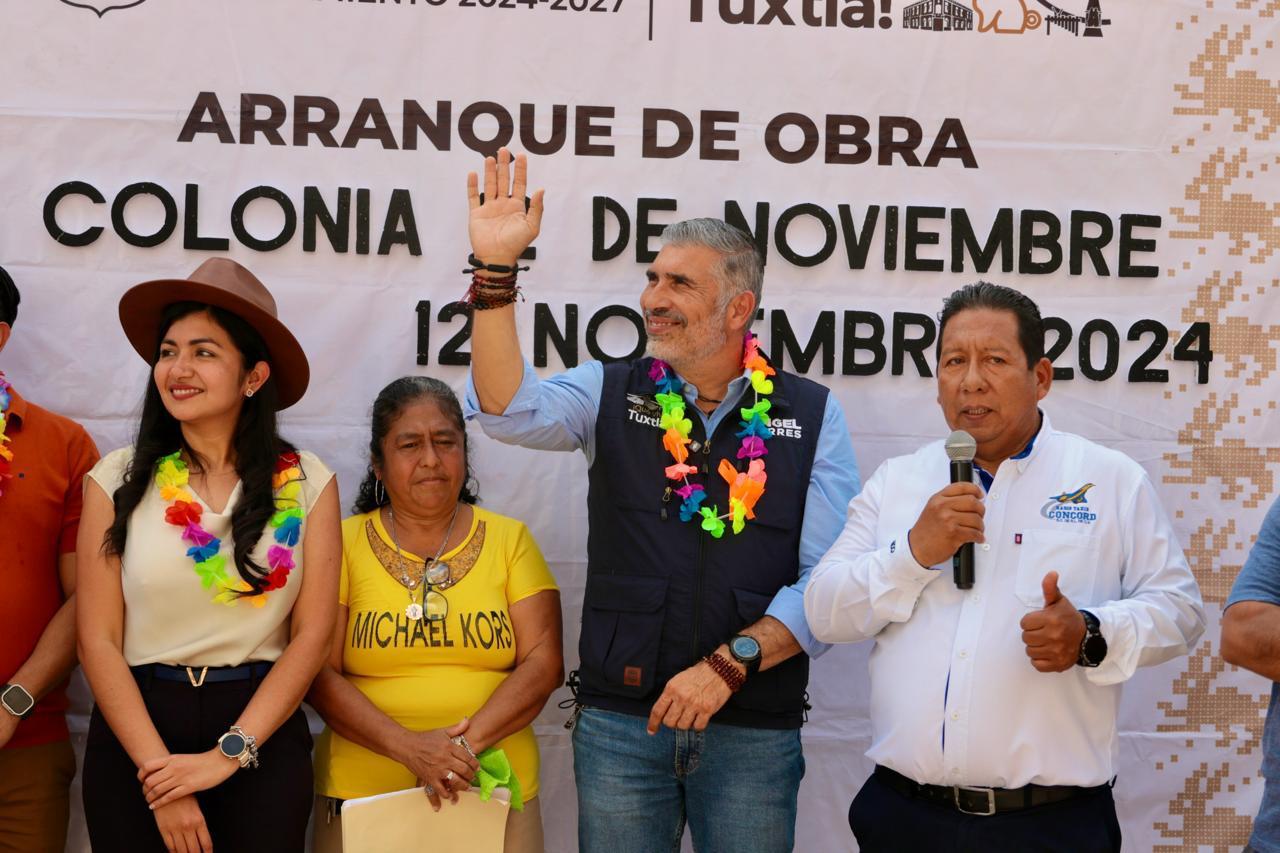 Se han puesto en marcha obras de pavimentación en la 6 de Junio, Las Granjas, San Pedro Progresivo, así como en la colonia 12 de Noviembre, la cual celebró sus 29 aniversarios y el banderazo de esta importante obra, por lo que las y los vecinos están contentos porque, dijeron, esto es justicia social.