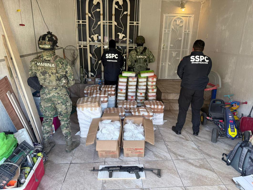 El día de ayer, como parte de una operación derivada de una detención previa, fueron decomisados más de 300 kilos de metanfetamina. Como seguimiento, hoy se llevó a cabo el cateo de un inmueble, donde se localizaron y aseguraron 420 kilos adicionales de esta droga sintética.