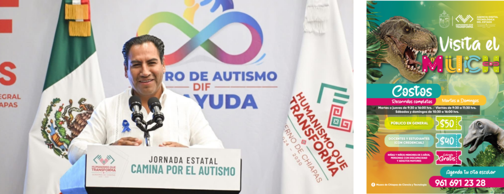El mandatario señaló que estas jornadas buscan fortalecer la concientización sobre la inclusión y el acompañamiento a las personas con autismo. Asimismo, reconoció el trabajo de especialistas del DIF Chiapas y del Centro de Autismo DIF TEAyuda, quienes brindan apoyo fundamental a las familias en la atención de niñas y niños.