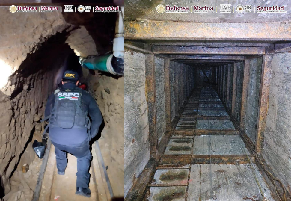 En un operativo conjunto realizado en Tijuana, Baja California, elementos de la Secretaría de Seguridad y Protección Ciudadana (SSPC), en coordinación con la Fiscalía General de la República (FGR), la Secretaría de Marina (Semar), la Secretaría de la Defensa Nacional (Sedena) y autoridades estatales, localizaron un túnel clandestino de aproximadamente 600 metros de longitud, utilizado presuntamente para el trasiego de drogas entre México y Estados Unidos.