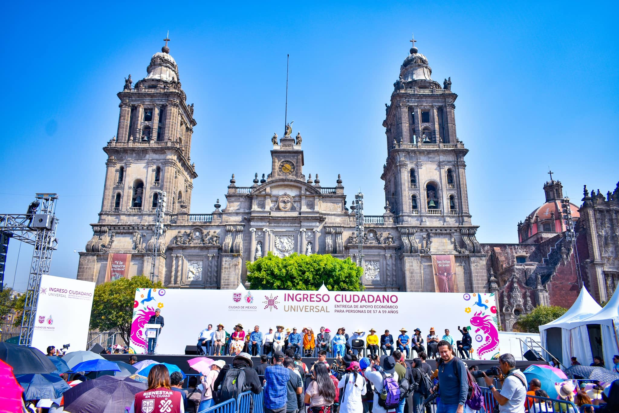 La alcaldesa de Tláhuac, Berenice Hernández Calderón, acompañó a la Jefa de Gobierno de la Ciudad de México, Clara Brugada, en la entrega del programa Ingreso Ciudadano Universal, un apoyo destinado a personas de 57 a 59 años que recibirán apoyos bimestrales para fortalecer su bienestar y garantizar una mejor calidad de vida.