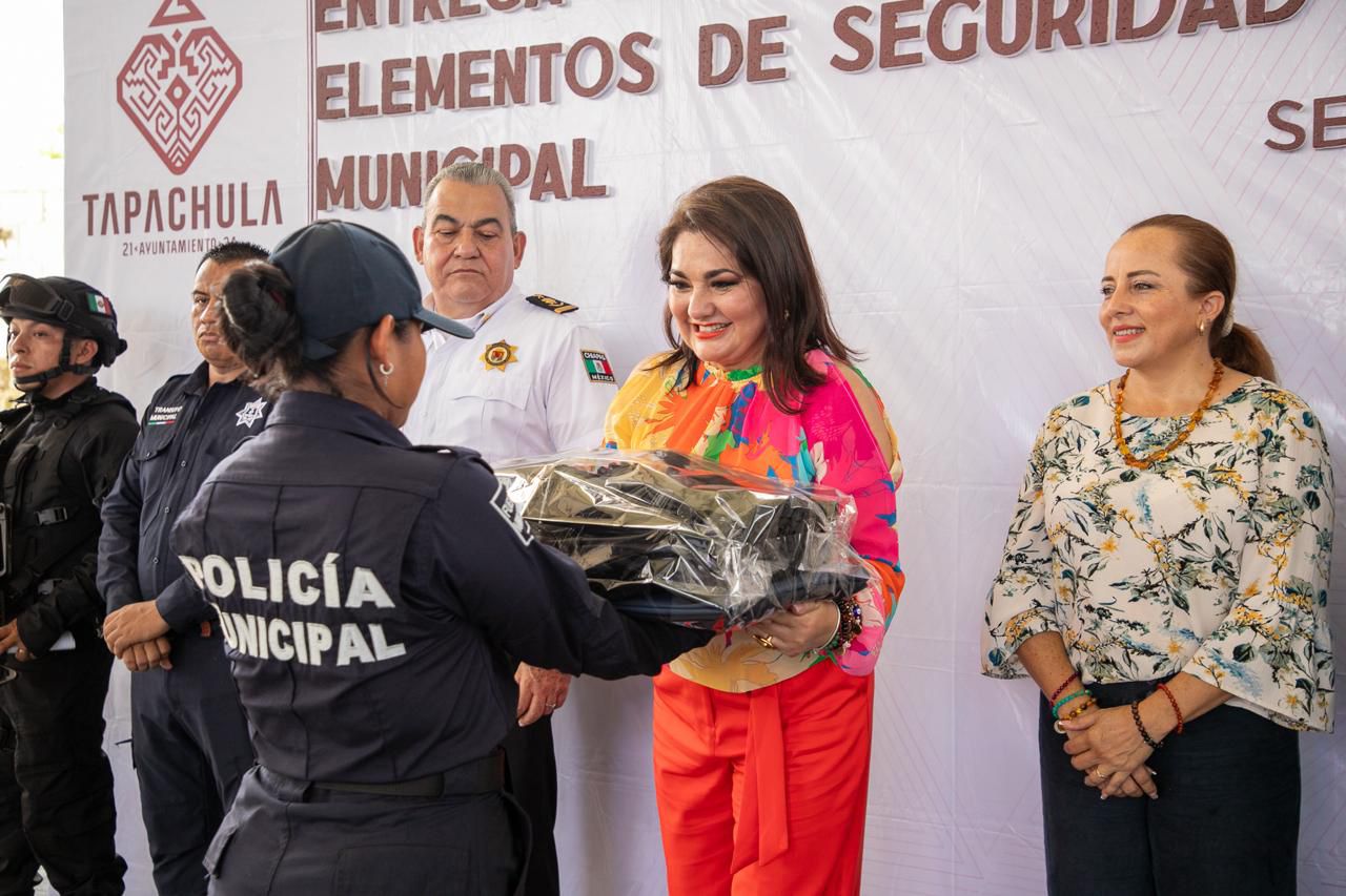“Con la entrega de estas patrullas, uniformes, equipo y las mejoras hechas en las celdas que entregamos hace unos días, el gobierno municipal de Tapachula se suma a la estrategias y condiciones dignas del trabajo policial”, aseveró la alcaldesa tapachulteca.