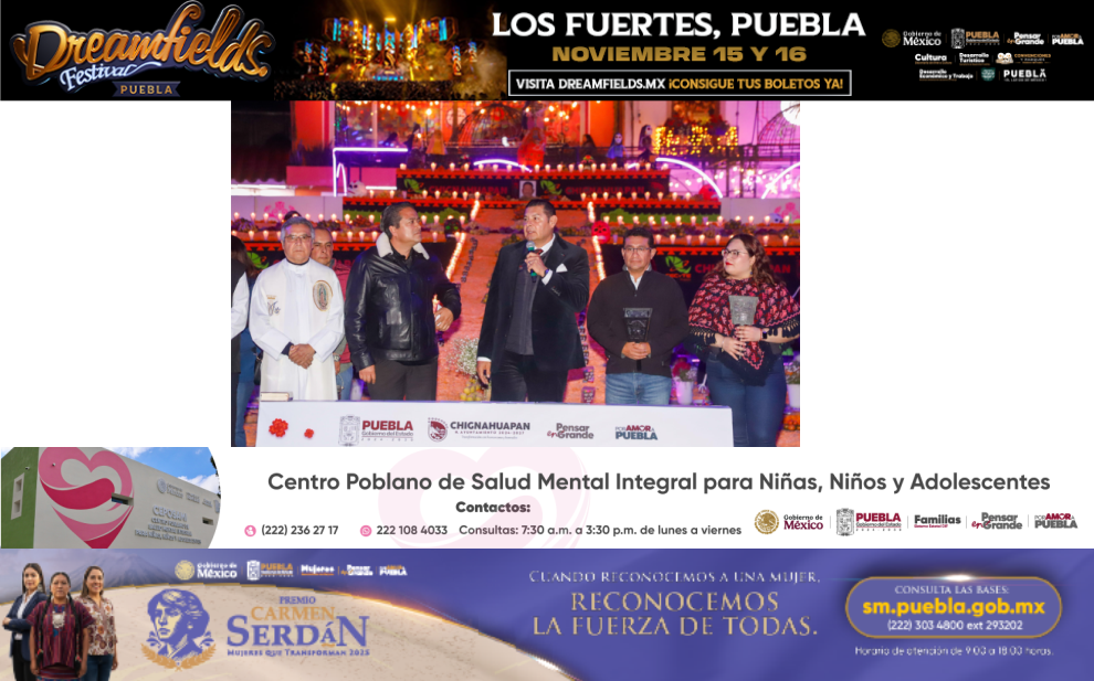 En una emotiva caminata por la Calzada de las Almas, el gobernador participó junto a la población en un recorrido iluminado con velas y antorchas, entre danzas y tapetes de aserrín. El trayecto concluyó en la Laguna de Chignahuapan, donde una pirámide de 400 metros cuadrados fue escenario de la representación del paso de las almas al Mictlán, combinando elementos prehispánicos, luces y pirotecnia.