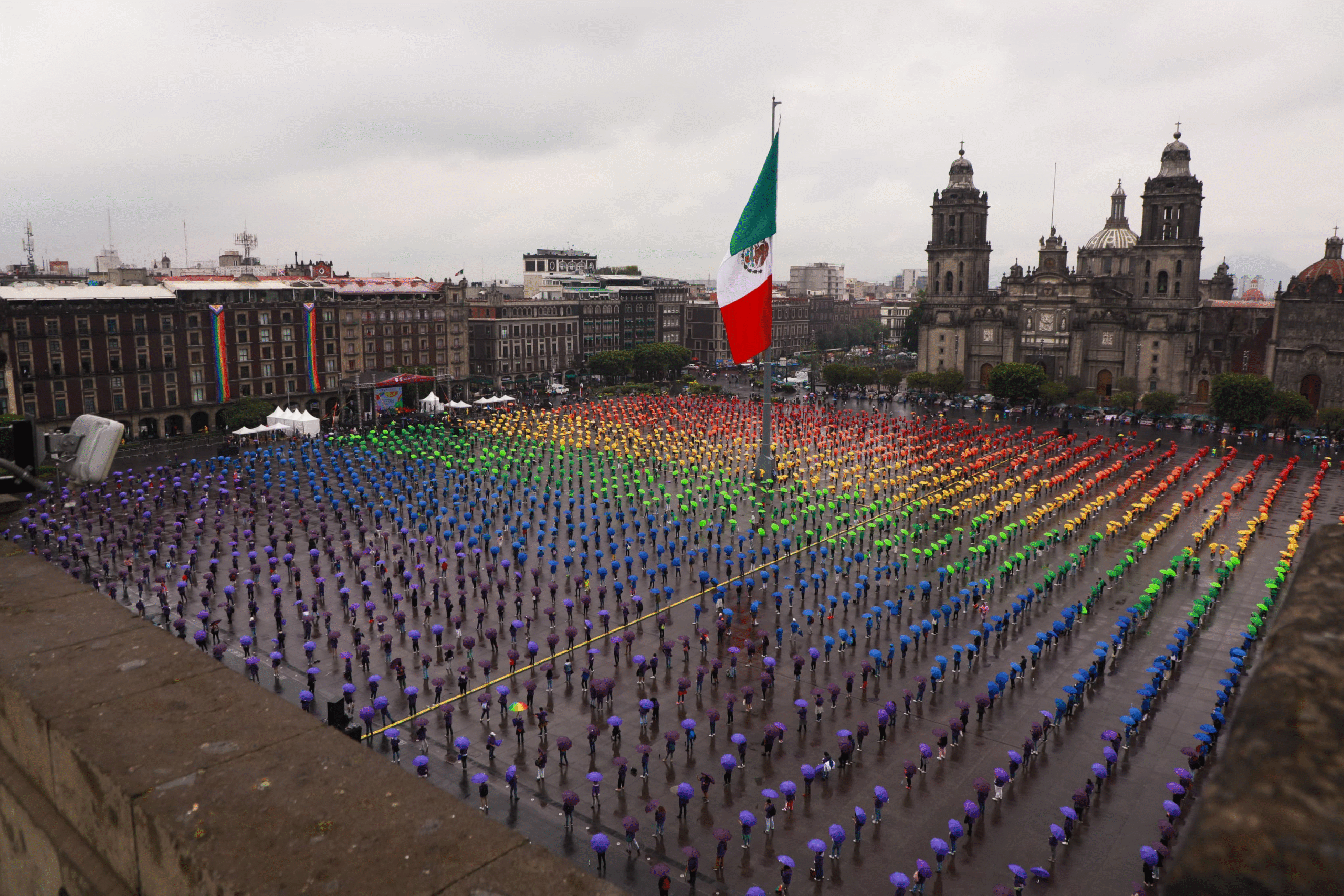 Como parte de los eventos para celebrar el mes del orgullo LGBT en la Ciudad de México, la Jefa de Gobierno, Clara Brugada Molina, encabezó el performance para desplegar en el Zócalo capitalino la bandera LGBTIQ+ más grande del mundo con la participación de más de 6 mil personas, como un símbolo de paz y respeto a los derechos humanos en el país y el mundo.