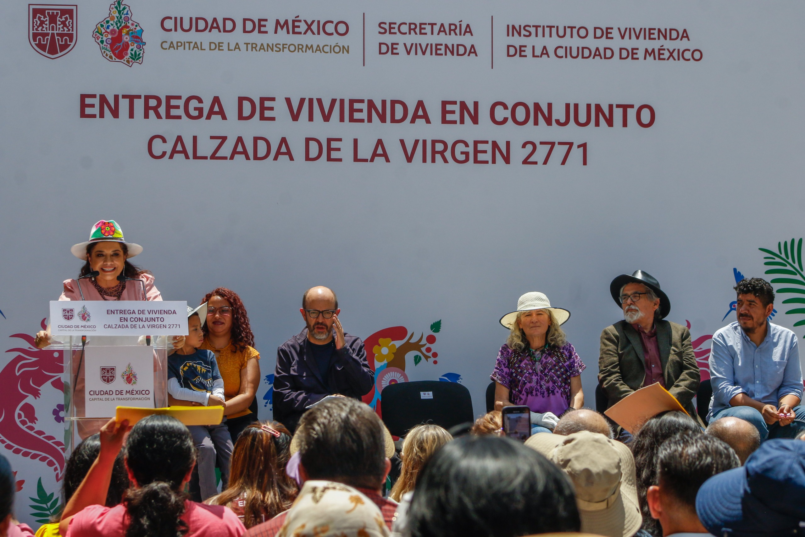 La Jefa de Gobierno, Clara Brugada Molina, entregó 196 viviendas de 60 y 65 metros cuadrados, como parte del conjunto habitacional ubicado en calzada de La Virgen 2771, alcaldía Coyoacán, en beneficio de cerca de mil personas, acción con la que refuerza la política social que impulsa el Gobierno de la Ciudad de México para garantizar el derecho a la vivienda digna.