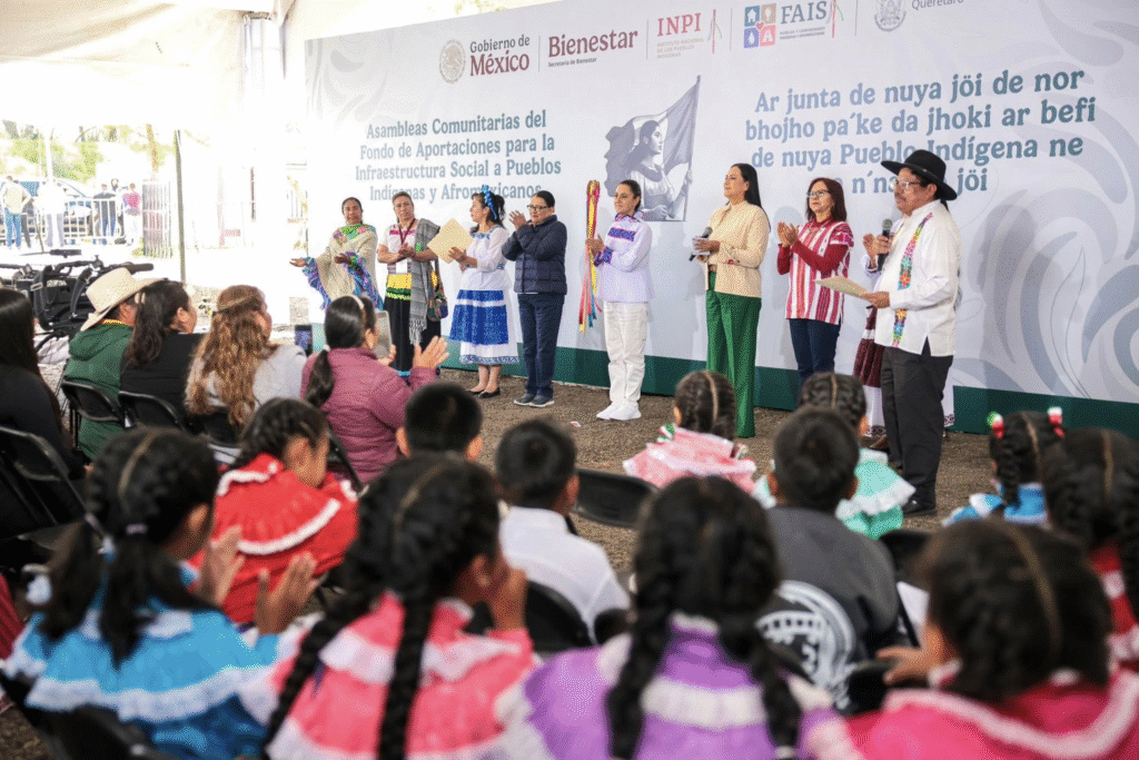 En el municipio de Amealco, Querétaro, la presidenta Claudia Sheinbaum Pardo encabezó la Asamblea del Fondo de Aportaciones para la Infraestructura Social de los Pueblos Indígenas y Afromexicanos (FAISPIAM), donde se realizó la entrega directa de recursos a comunidades originarias como parte de la política nacional de justicia social y reconocimiento de derechos colectivos.