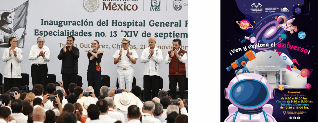El gobernador Eduardo Ramírez Aguilar acompañó a la presidenta de la República, Claudia Sheinbaum Pardo, a la inauguración del Hospital General Regional de Especialidades No. 13 “XIV de septiembre” del Instituto Mexicano del Seguro Social (IMSS) en Tuxtla Gutiérrez. Durante este acto, agradeció al Gobierno de México por concretar esta magna obra que fortalecerá de manera integral los servicios de salud en beneficio de las y los derechohabientes de Chiapas y del Sureste.