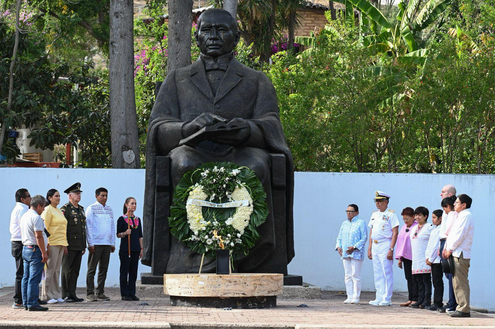 La presidenta de México, Claudia Sheinbaum Pardo, acompañada por la secretaria de Gobierno, Rosa Icela Rodríguez, encabezó la ceremonia conmemorativa por el 219 aniversario del natalicio de Benito Juárez en Guelatao, Oaxaca. Durante el evento, se destacó el legado del Benemérito de las Américas como símbolo de dignidad, firmeza y amor a la patria, así como su defensa incansable de la soberanía nacional.