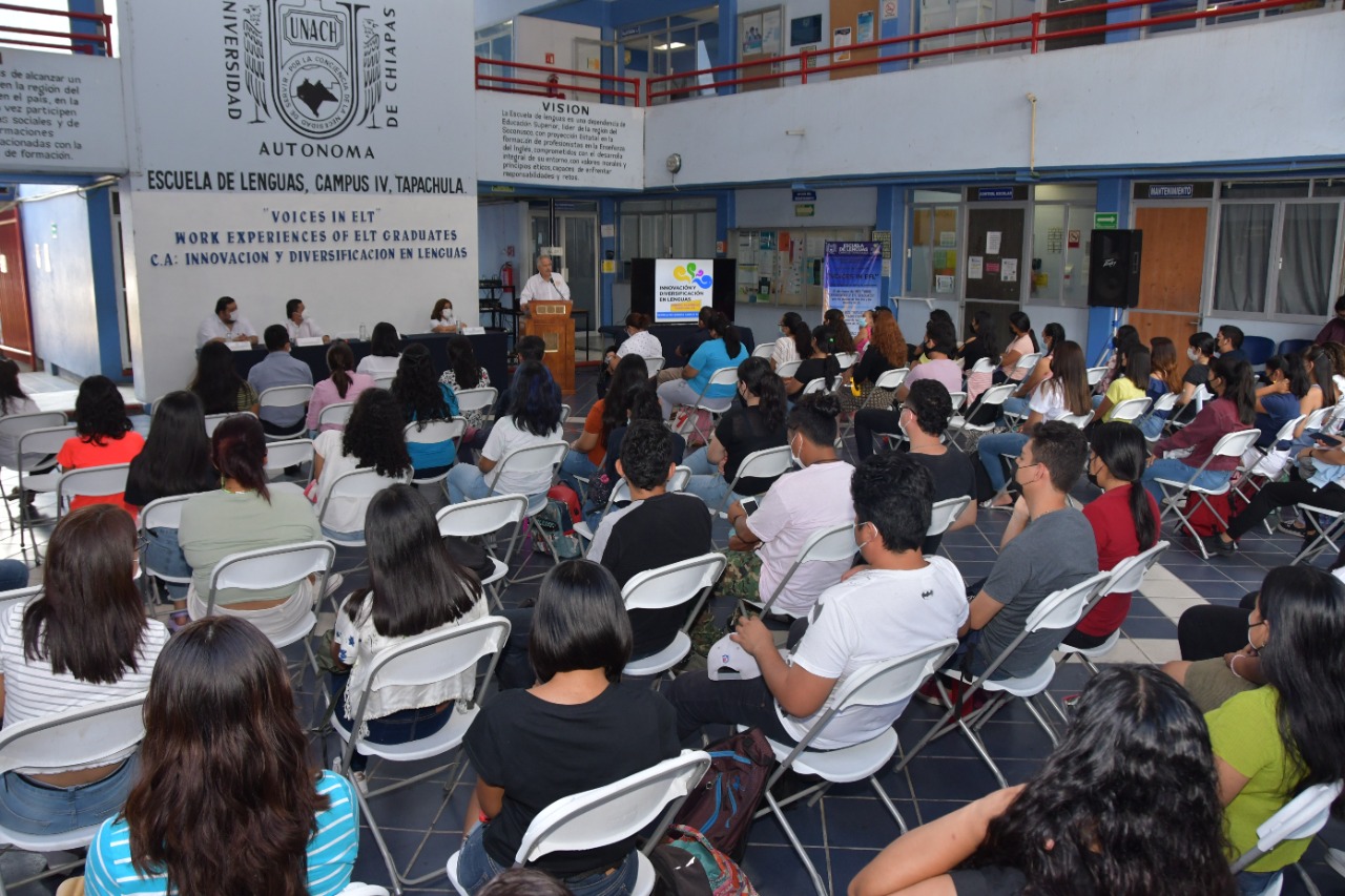 Tapachula, Chiapas.- En apego al proyecto académico de la actual Administración Central de la UNACH, que encabeza el rector, Carlos F. Natarén Nandayapa, y en seguimiento a la visión de la Universidad al 2030, la Escuela de Lenguas Campus Tapachula, es sede del ciclo de conferencias “Voices in EFL”, que se está llevando a cabo en la explanada de esta unidad académica.