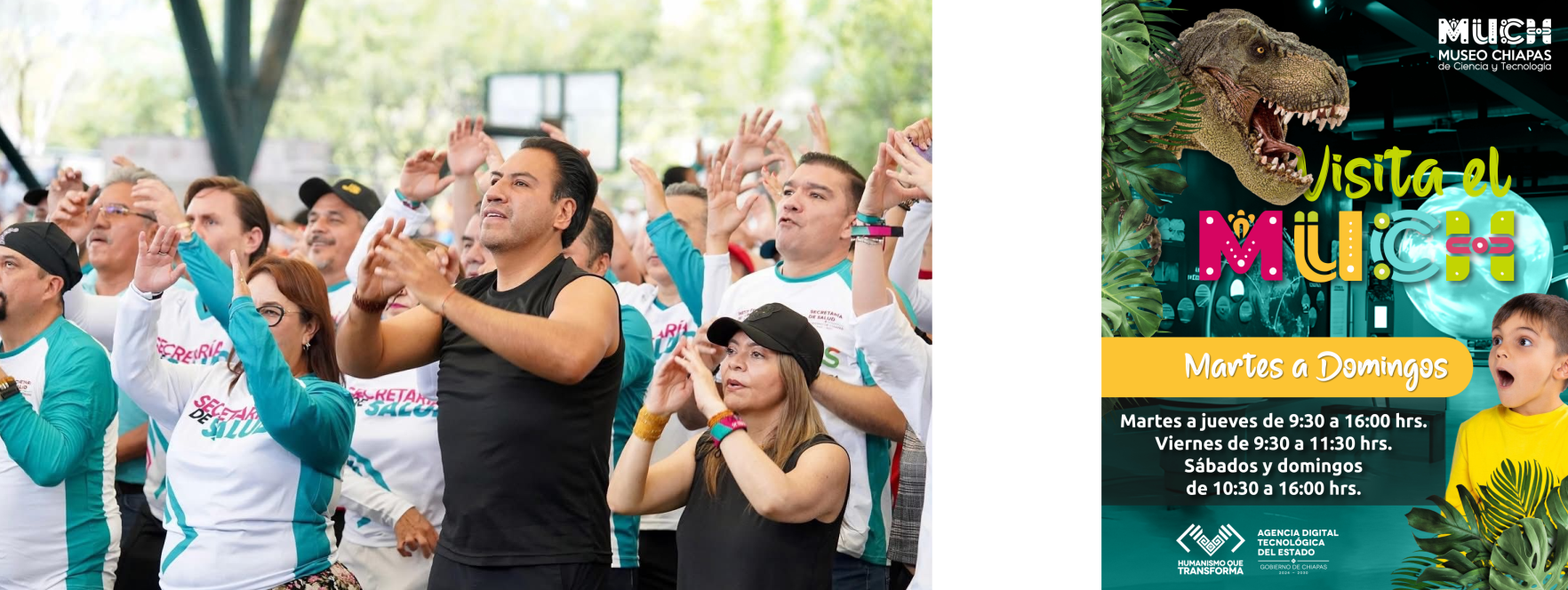 En Tuxtla Gutiérrez, el gobernador Eduardo Ramírez Aguilar puso en marcha la iniciativa Chiapas se Mueve, que reunió de manera simultánea a personas de 105 municipios. En este marco, convocó a sumarse a esta estrategia que impulsa hábitos saludables, la activación física y una mejor alimentación.