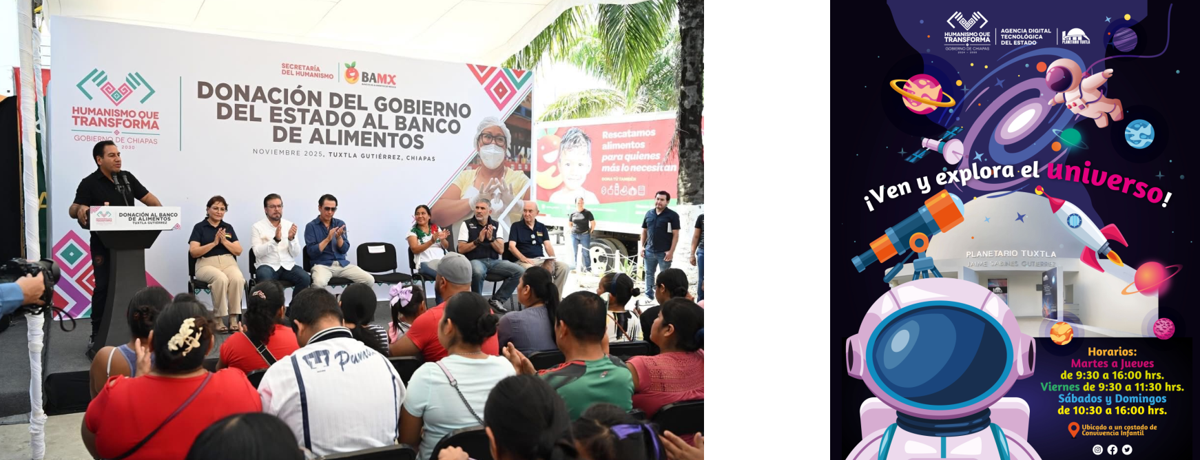 El gobernador Eduardo Ramírez Aguilar encabezó el acto de donación de un vehículo de carga al Banco de Alimentos de México A.C. (BAMX) en Tuxtla Gutiérrez, donde reafirmó su respaldo a los organismos y asociaciones civiles que trabajan con amor y humanismo para apoyar a la población, especialmente a quienes se encuentran en situación de mayor vulnerabilidad.