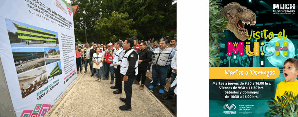 El gobernador Eduardo Ramírez Aguilar dio el banderazo de inicio a la construcción de nuevos espacios en la Facultad de Ciencias Humanas y Sociales de la Universidad de Ciencias y Artes de Chiapas (Unicach), con una inversión superior a 23.3 millones de pesos, en beneficio de más de mil 300 estudiantes. En este marco, reafirmó su compromiso de seguir invirtiendo en la ampliación y fortalecimiento de la infraestructura educativa, con el objetivo de garantizar mejores condiciones de enseñanza a la juventud chiapaneca.