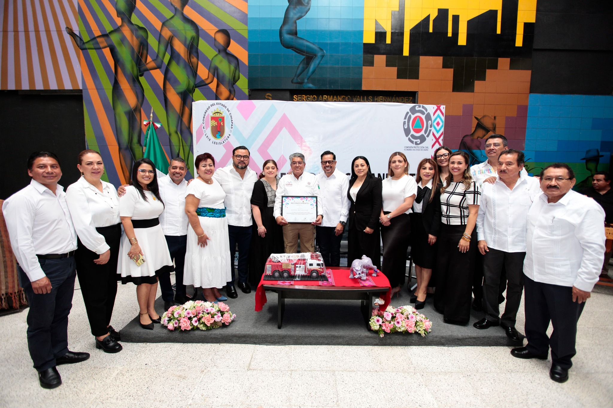 Estuvieron presentes en la entrega del reconocimiento las y los diputados de la Sexagésima Novena Legislatura; presidentes municipales, integrantes de diversas delegaciones de Bomberos, organizaciones civiles y público en general.