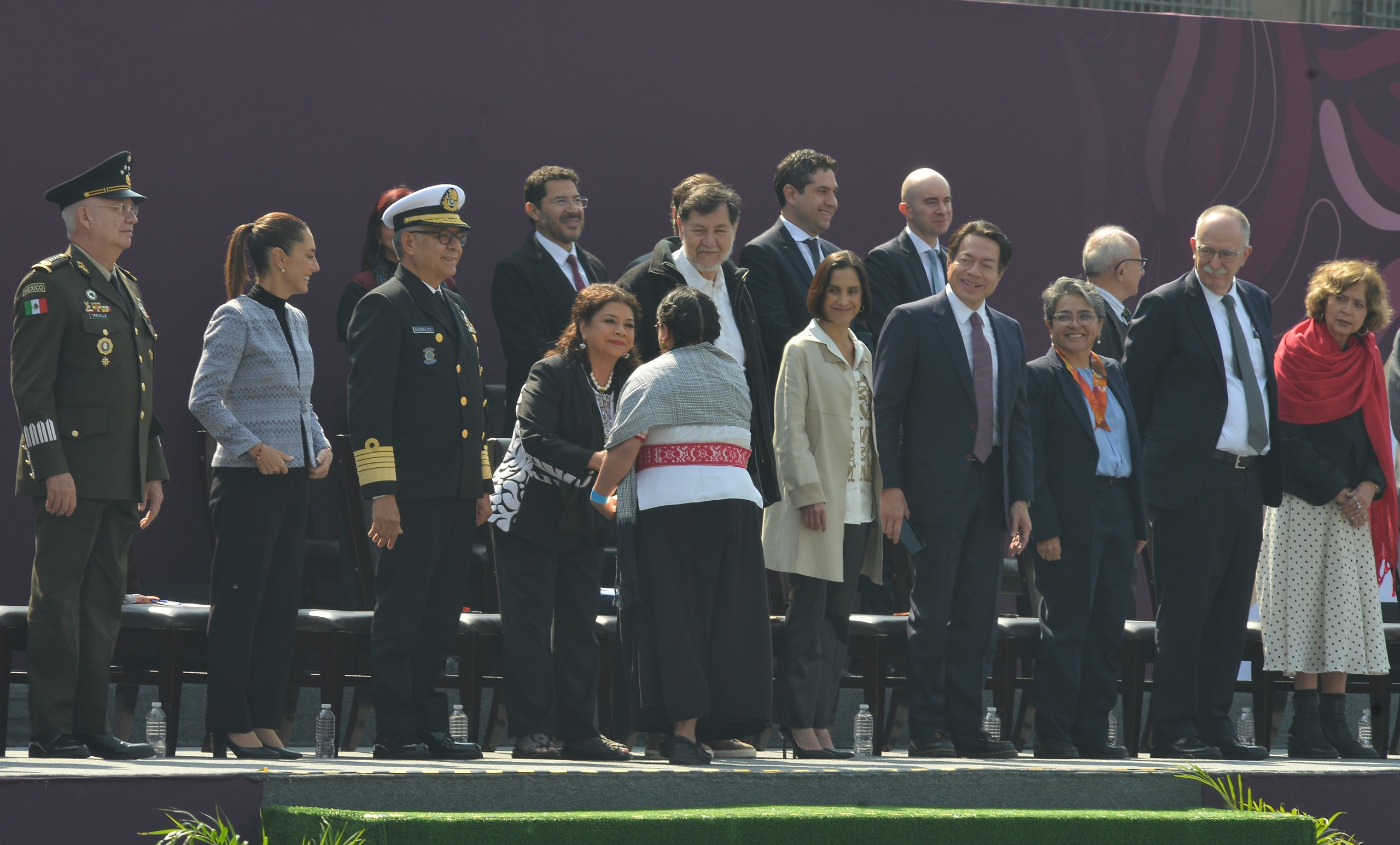 Participaron en el homenaje, el presidente del Senado de la República, Gerardo Fernández Noroña; la investigadora del Instituto Nacional de Antropología e Historia, Patricia Ledesma, así como los titulares del gabinete legal y ampliado del Gobierno de México.
