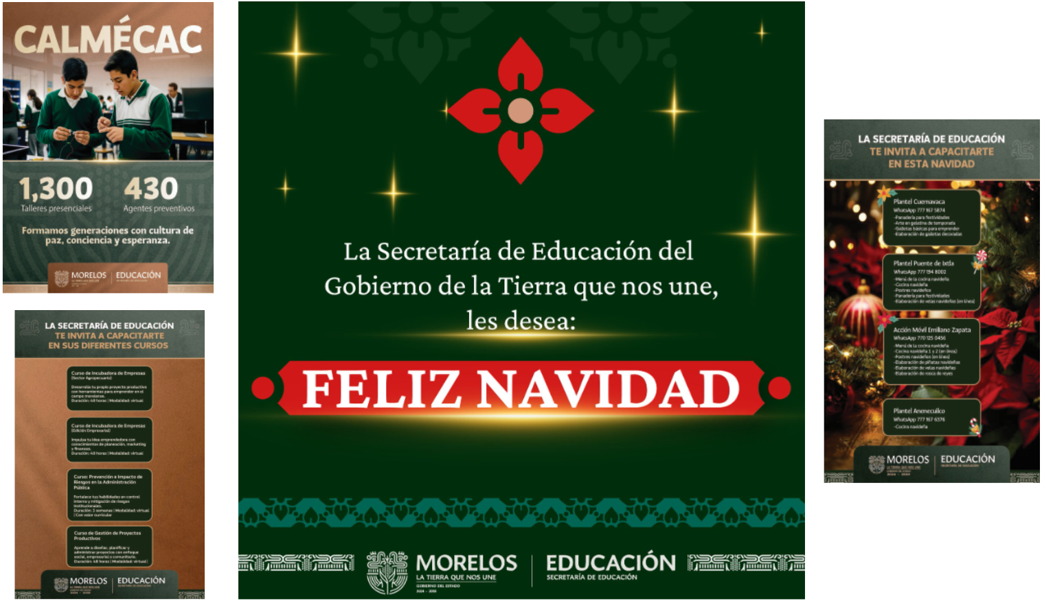 La Secretaría de Educación del Estado de Morelos extendió un mensaje de felicitación con motivo de las fiestas decembrinas, deseando una Feliz Navidad a todas las familias morelenses. En su mensaje institucional, la dependencia expresó su deseo de que esta celebración sea un tiempo de paz, unión y esperanza en cada hogar.