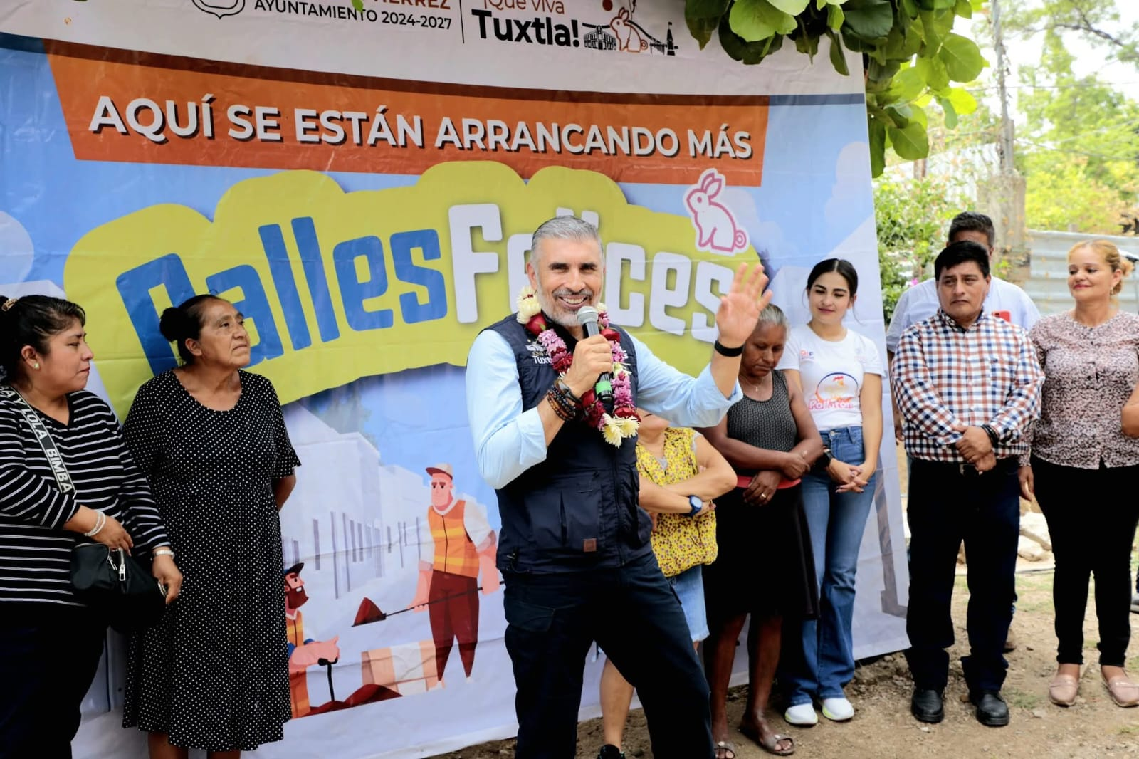 • “Estamos arrancando una calle más en beneficio de la colonia 6 de Junio”, afirmó Angel Torres, presidente municipal de Tuxtla Gutiérrez