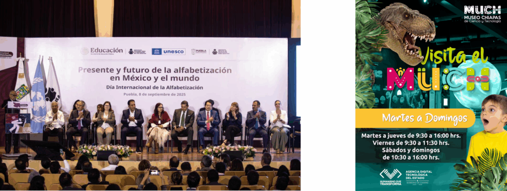 En el marco del Día Internacional de la Alfabetización, el gobernador Eduardo Ramírez Aguilar participó en el foro Presente y futuro de la alfabetización en México y el mundo, organizado por el Gobierno de Puebla, donde expuso la estrategia de su administración, a través del programa Chiapas Puede, para erradicar la ignorancia en la entidad.