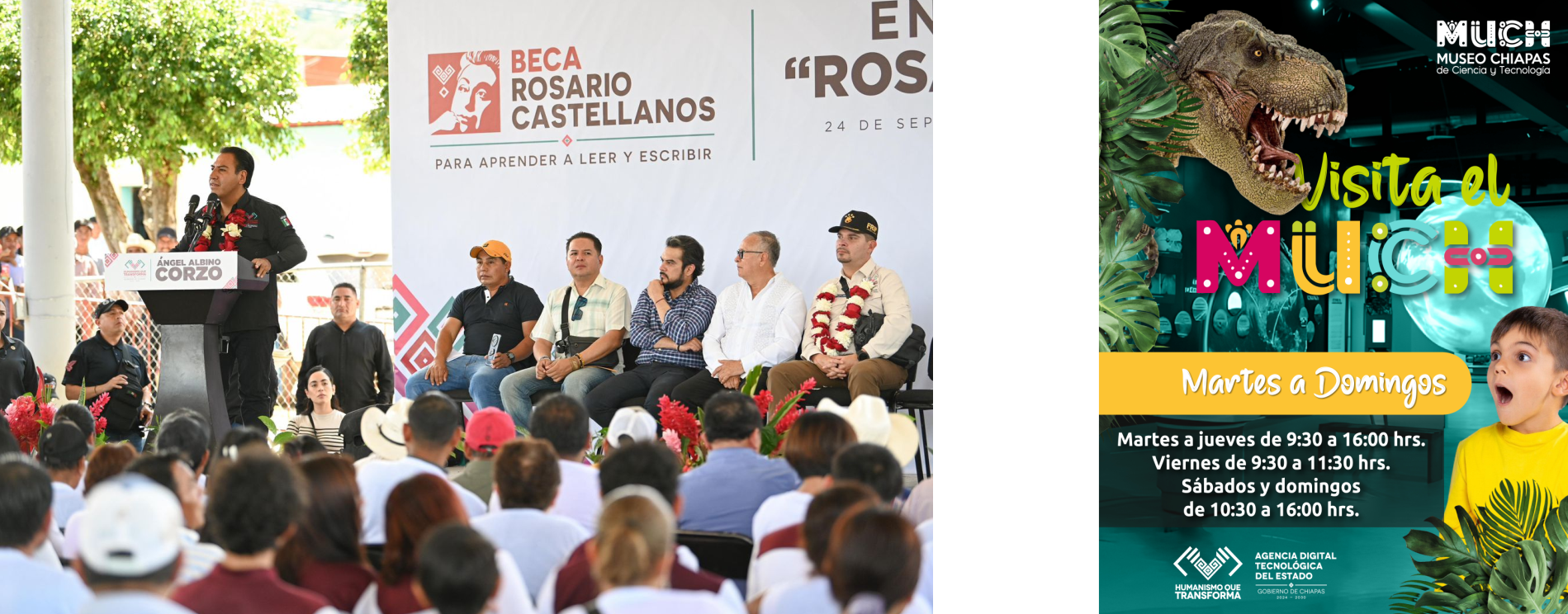 El secretario de Educación, Roger Mandujano Ayala, destacó que en la Nueva ERA se invierten más de mil millones de pesos en alfabetización en comunidades históricamente olvidadas, a través de las becas Rosario Castellanos. “Por primera vez, un gobernador apuesta decididamente por la educación, un tema que, aunque materialmente no se ve, engrandece el alma y la conciencia de los pueblos”, señaló.