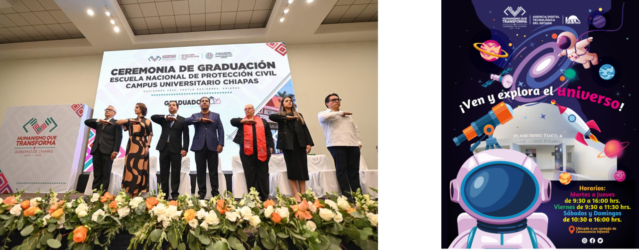 El gobernador Eduardo Ramírez Aguilar asistió a la ceremonia de graduación de estudiantes de licenciatura, maestría y doctorado de la Escuela Nacional de Protección Civil (Enaproc), Campus Universitario Chiapas. En este marco, felicitó a las y los profesionistas y los llamó a desempeñarse con humanismo, lealtad y dedicación, poniendo sus conocimientos al servicio de sus estados y países.