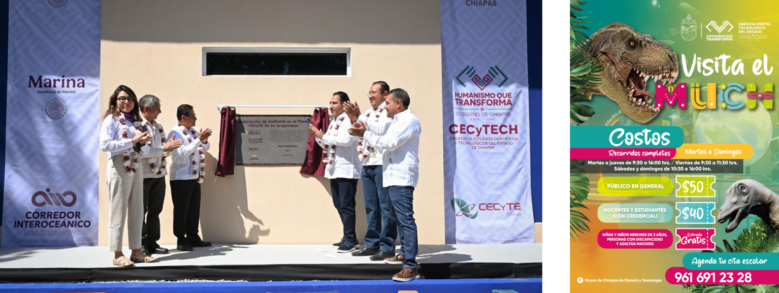 • Las intervenciones se realizaron en los planteles 06 Acapetahua y 03 Villa Comaltitlán del Colegio de Estudios Científicos y Tecnológicos de Chiapas, con una inversión cercana a los 10 mdp