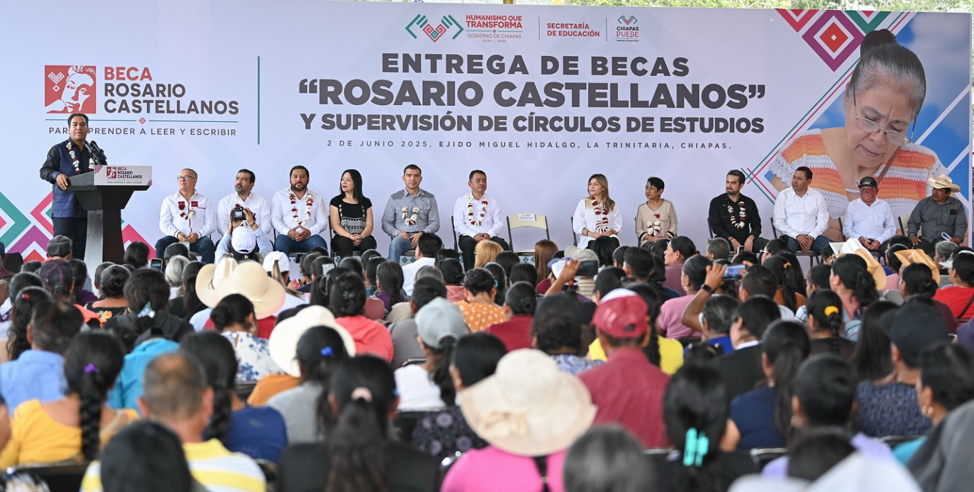 El gobernador de Chiapas, Eduardo Ramírez Aguilar, encabezó la entrega de becas “Rosario Castellanos” y supervisó los Círculos de Estudio del programa “Chiapas Puede” en el Ejido Miguel Hidalgo. Durante su visita, reafirmó su compromiso con la educación como herramienta fundamental para transformar la vida de las y los chiapanecos.