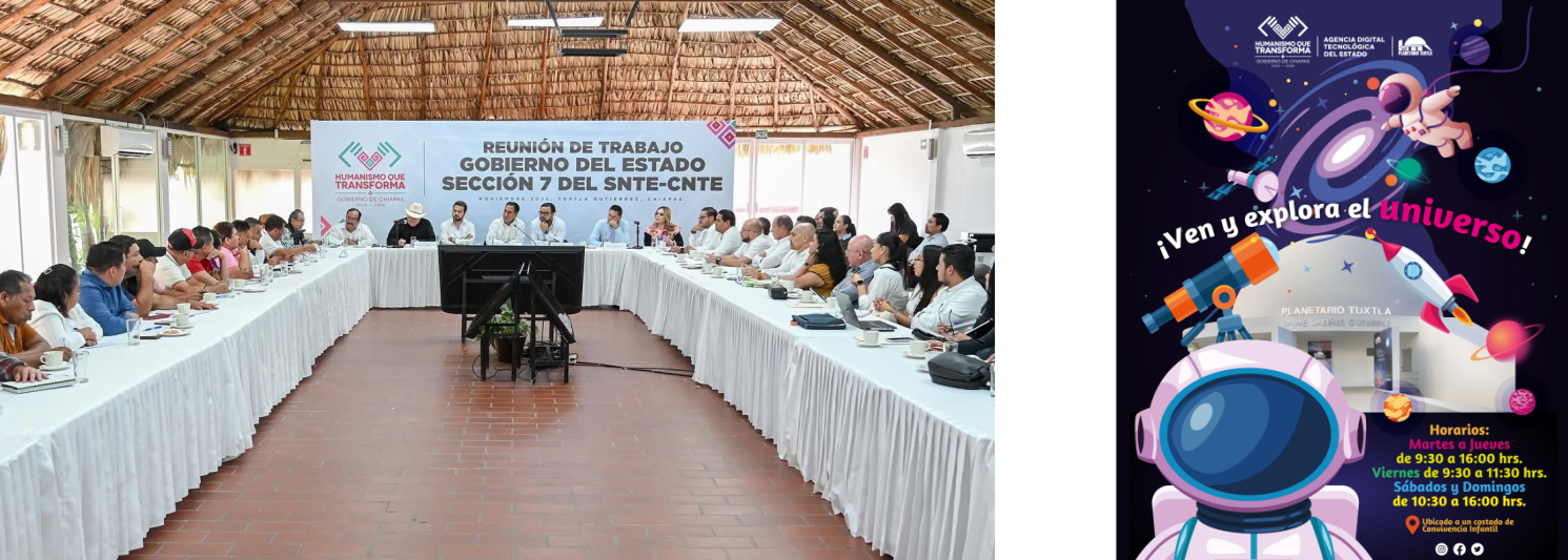 El gobernador Eduardo Ramírez Aguilar sostuvo una reunión de trabajo con integrantes de la Sección 7 del SNTE-CNTE Chiapas, en la que escuchó con atención sus planteamientos. Acompañado por los secretarios de Educación, Roger Mandujano Ayala, y de Finanzas, Manuel Antonio Pariente Gavito, el mandatario refrendó la disposición de su gobierno para trabajar de manera conjunta y atender las necesidades del magisterio chiapaneco, dentro del ámbito de sus competencias y atribuciones.