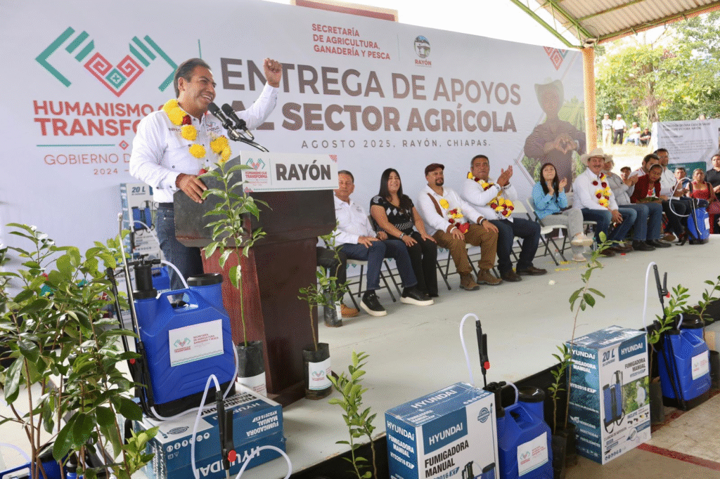En el municipio de Rayón, el gobernador Eduardo Ramírez Aguilar encabezó la entrega de insumos agrícolas, resaltando que el gobierno de la Nueva ERA se distingue por estar cercano y atento a las necesidades de las y los productores del campo chiapaneco, con el propósito de que sea productivo, próspero y viva siempre en paz.