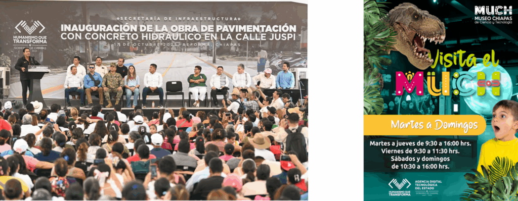 Durante la gira, el mandatario inauguró la pavimentación con concreto hidráulico de la calle Juspi; entregó obras en las primarias 21 de Marzo, Fray Matías de Córdova y Joaquín Miguel Gutiérrez; y supervisó la construcción de aulas en la escuela Francisco Ignacio Madero González. Además, constató los avances del camino Reforma–Juárez, anunció la instalación de la red de distribución eléctrica en la localidad Rafael Pascacio Gamboa y dio inicio a la rehabilitación de la Casa de Salud Ignacio Zaragoza.