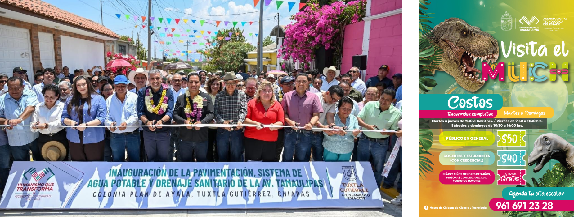 El gobernador Eduardo Ramírez Aguilar acompañó al alcalde de Tuxtla Gutiérrez, Angel Torres Culebro, a la inauguración de la pavimentación y el mejoramiento integral del sistema de agua potable y drenaje sanitario de la Avenida Tamaulipas, en la colonia Plan de Ayala, donde reafirmó el compromiso del gobierno de la Nueva ERA de trabajar en unidad para impulsar la prosperidad de la capital chiapaneca.
