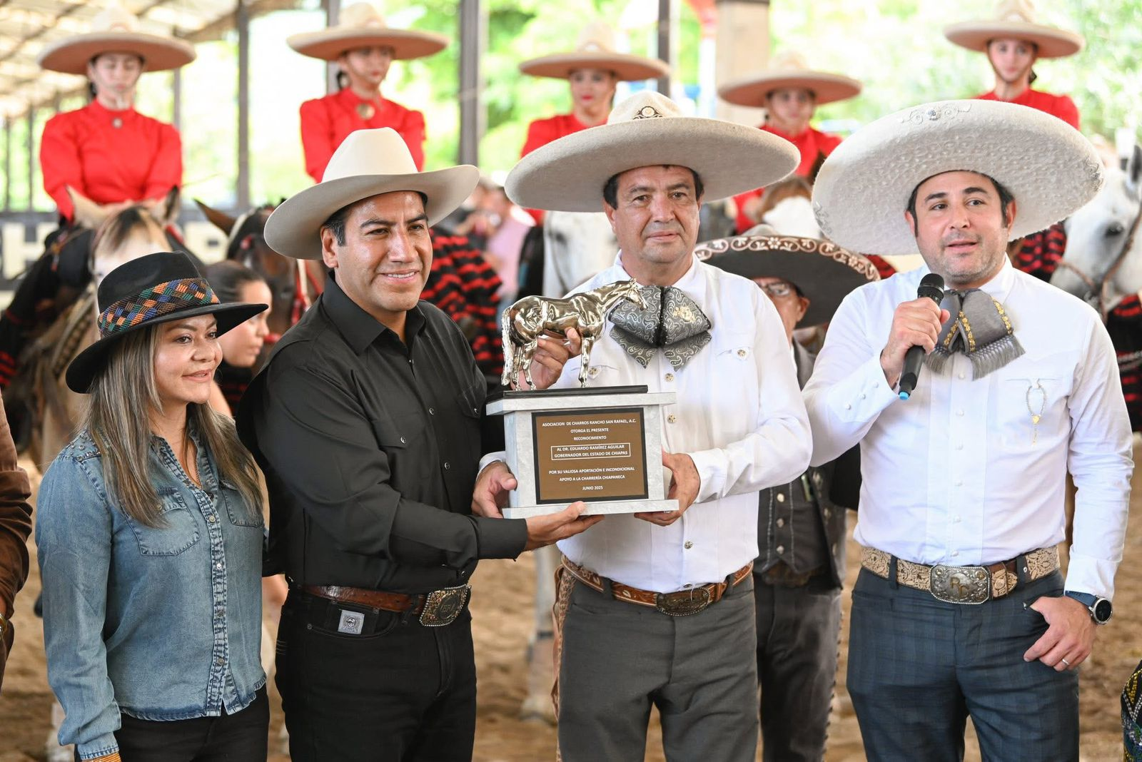 El gobernador de Chiapas, Eduardo Ramírez Aguilar, asistió a la ceremonia de premiación del LX Campeonato Estatal Charro 2025, donde felicitó a los equipos ganadores y reconoció la labor de quienes hicieron posible este destacado evento deportivo. Acompañado por su esposa, Sofía Espinoza Abarca, resaltó el valor cultural de la charrería en el estado.