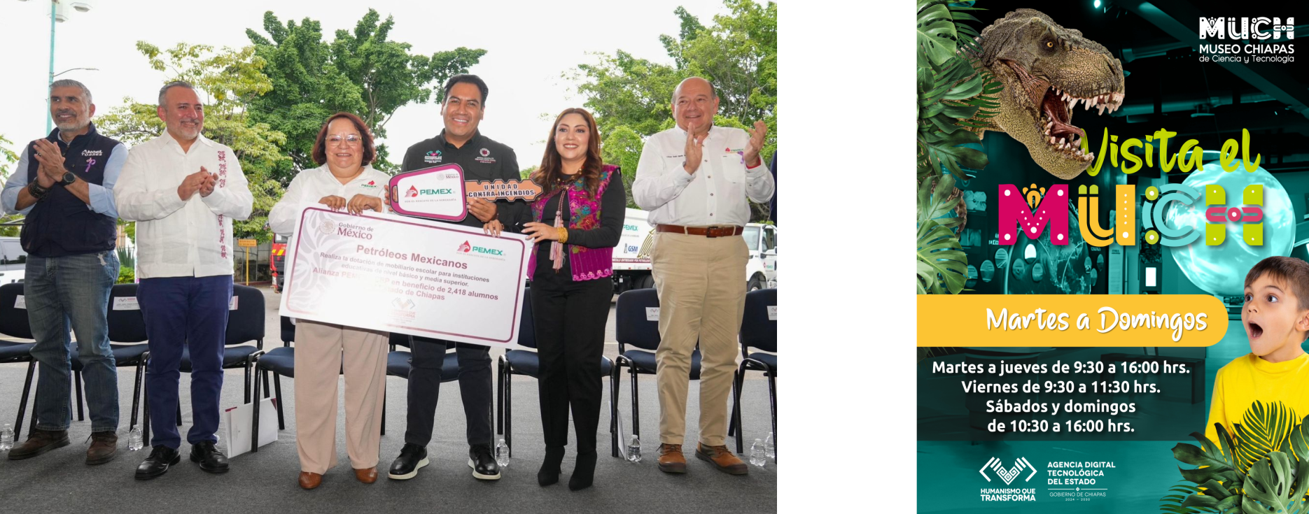 En representación del secretario de Educación Pública, Mario Delgado, el director del Instituto Nacional de la Infraestructura Física Educativa (Inifed), Francisco Javier Cabiedes Uranga, informó que, como parte de la Alianza Pemex–SEP, se dotó de mobiliario escolar a instituciones de nivel básico y medio superior, en beneficio de más de dos mil estudiantes, con el propósito de impulsar un aprendizaje inclusivo y equitativo en las zonas con mayor rezago. Reconoció además los resultados y el compromiso de Eduardo Ramírez en la transformación educativa de Chiapas.