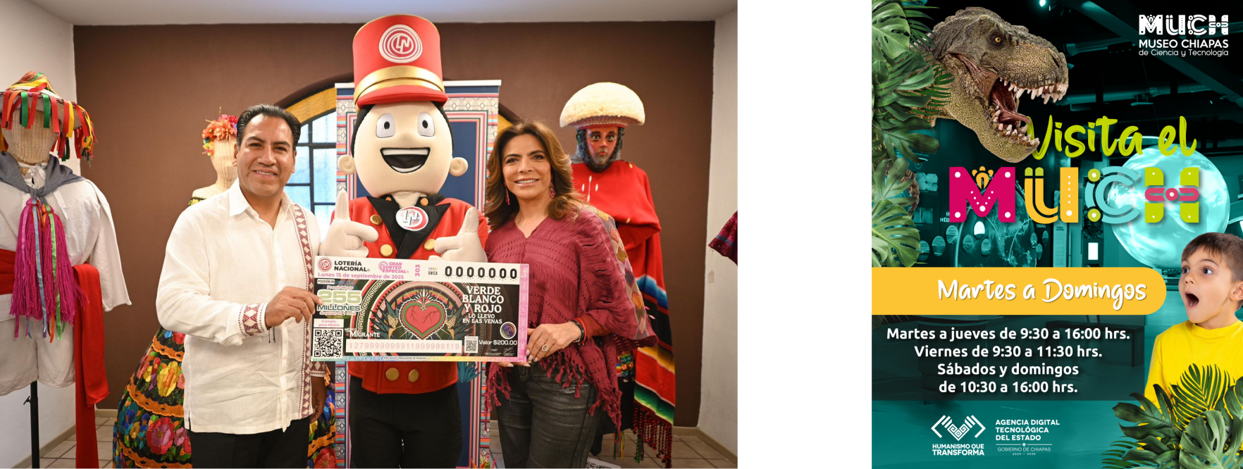 El gobernador de Chiapas, Eduardo Ramírez Aguilar y la directora general de la Lotería Nacional, Olivia Salomón Vibaldo, presentaron el Gran Sorteo Especial “México con M de migrante”, impulsado por la presidenta Claudia Sheinbaum Pardo en honor a las y los migrantes mexicanos. Todas las utilidades del sorteo, que se llevará a cabo el 15 de septiembre, en el marco del 255 aniversario de la Lotería Nacional, se destinarán a apoyarlos.