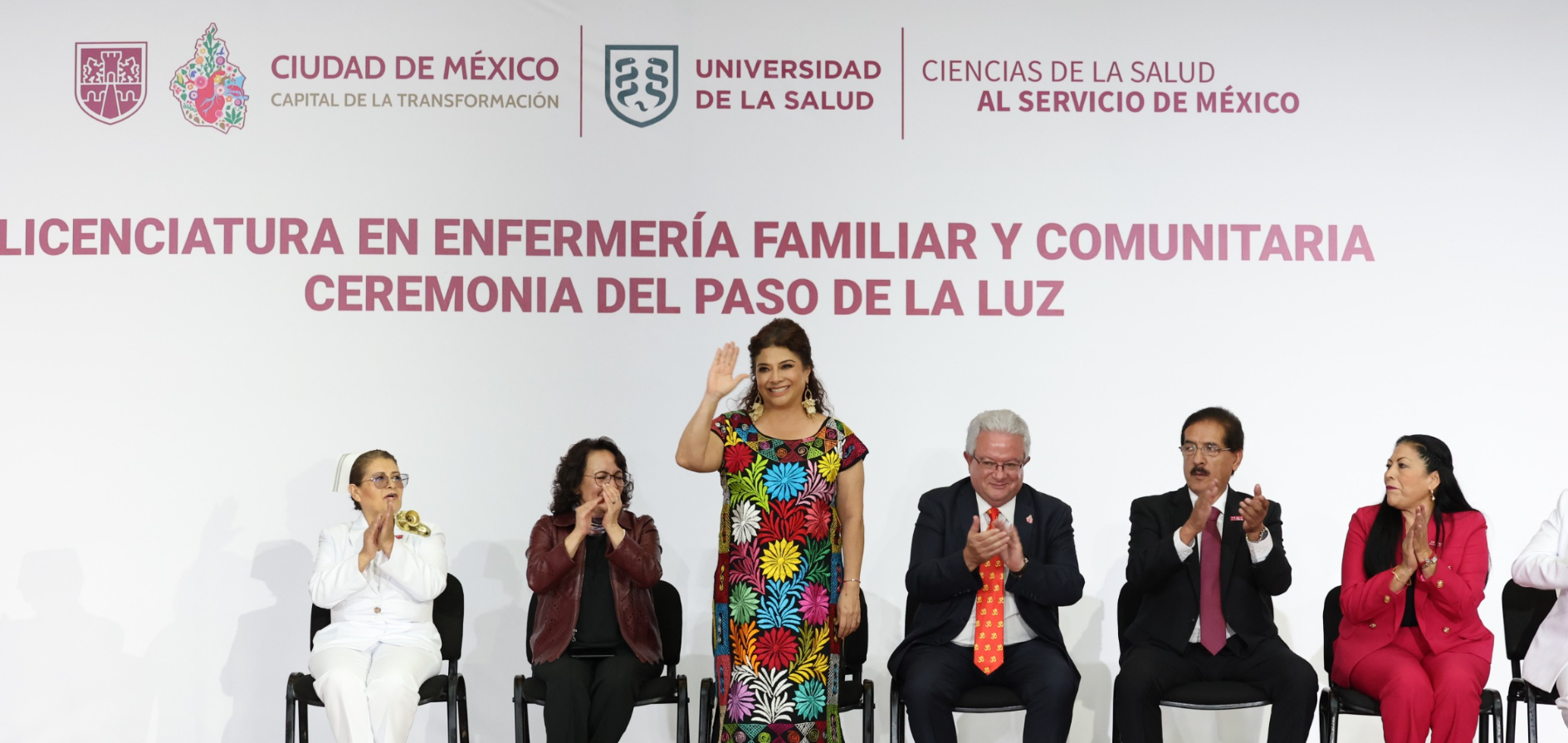 Clara Brugada, al ser testigo de la ceremonia Paso de la Luz, mencionó que la carrera de Enfermería Familiar y Comunitaria, de la que hoy se gradúan 183 mujeres y 33 hombres, está pensada para transformar la salud desde sus cimientos con un enfoque territorial, preventivo, comunitario y profundamente humano.