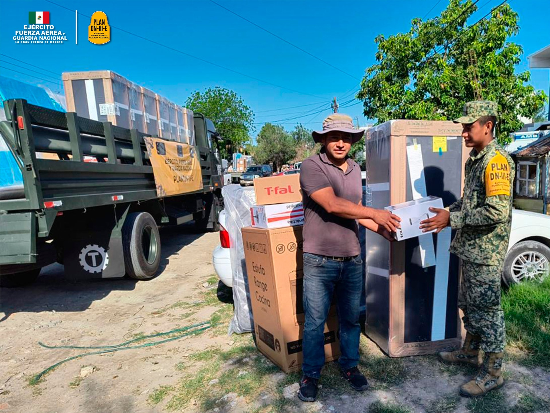 Como parte de la estrategia de auxilio a la población civil, el Ejército Mexicano y la Fuerza Aérea Mexicana activaron el Plan DN-III-E en el estado de Tamaulipas, donde entregaron enseres domésticos a familias afectadas por las recientes lluvias. Las acciones se realizaron en coordinación con la Guardia Nacional y bajo la jurisdicción de la 8/a Zona Militar.