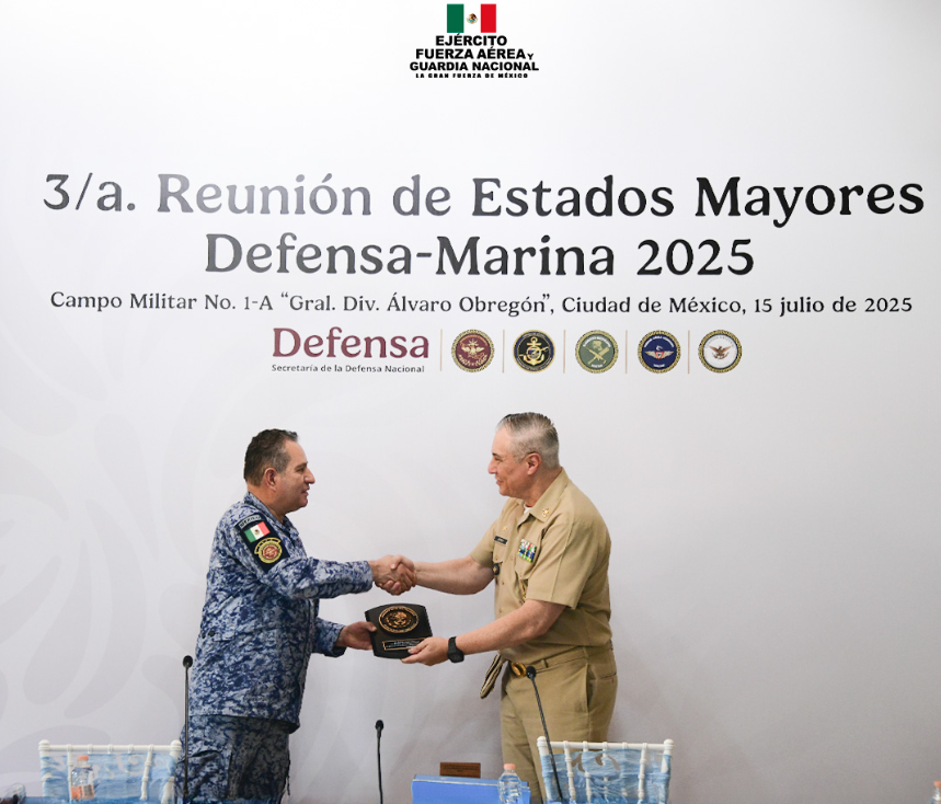 Integrantes del Ejército Mexicano y la Fuerza Aérea participaron en la “Tercera Reunión de Estados Mayores Defensa-Marina 2025”, donde se consolidaron acuerdos estratégicos de colaboración con la Secretaría de Marina para reforzar la seguridad nacional y contribuir al desarrollo del país. Durante la sesión, se abordaron temas clave para la cooperación interinstitucional, destacando acuerdos en materia de inteligencia, ciberdefensa, logística, mando y control, estandarización de procedimientos operativos y protocolos conjuntos de actuación en casos de desastres naturales.