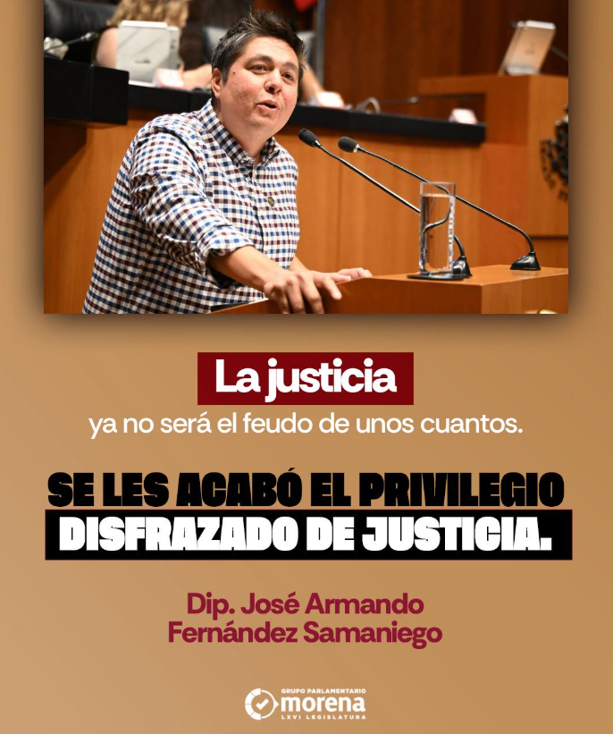 El diputado Armando Samaniego afirmó que con la transformación del Poder Judicial, se pone fin a la justicia para unos cuantos y se abre paso a un sistema verdaderamente accesible y equitativo para todas y todos los mexicanos.
