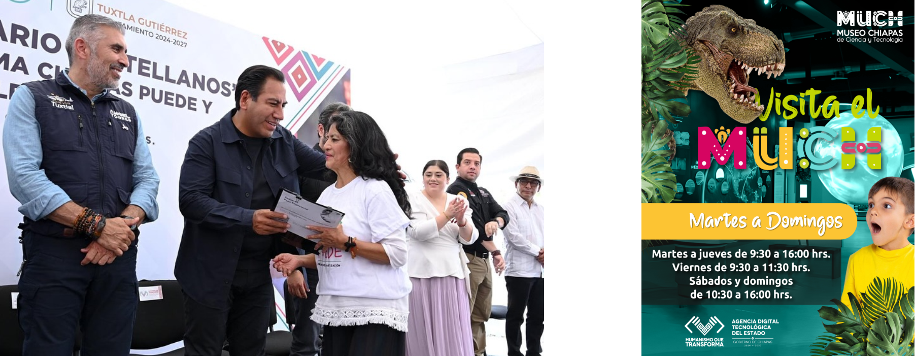 Tras felicitar y reconocer a las y los educandos, el mandatario anunció que el programa Chiapas Puede continuará apoyando a quienes deseen seguir estudiando. Reafirmó su compromiso con la educación y compartió una reflexión de José Martí: “Al venir a la tierra, toda persona tiene derecho a que se le eduque, y después, en retribución, el deber de contribuir a la educación de todos los demás”.