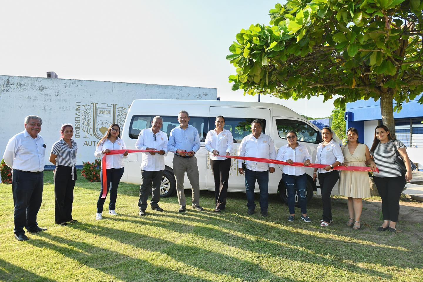 Tonalá, Chiapas. – El rector Carlos Faustino Natarén Nandayapa entregó una unidad de transporte, al encargado de la Dirección de la Escuela de Ciencias Administrativas Istmo – Costa, con sede en Tonalá, Eduardo Ortiz Hernández.
