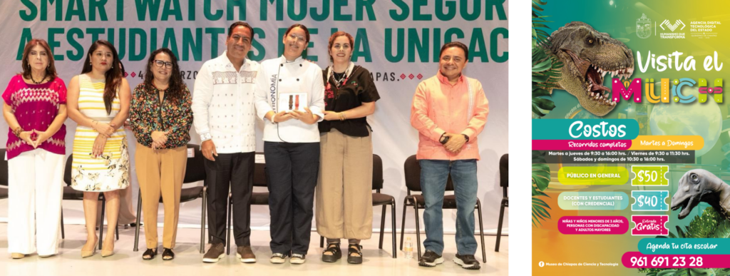 El gobernador Eduardo Ramírez Aguilar entregó dispositivos smartwatch del Programa Mujer Segura: Presiona, Activa y Alerta a alumnas de la Universidad Autónoma de Ciencias y Artes de Chiapas (Unicach), en Tuxtla Gutiérrez. Destacó que el objetivo del gobierno de la Nueva ERA es que las mujeres vivan con tranquilidad y sientan la protección permanente de las autoridades.