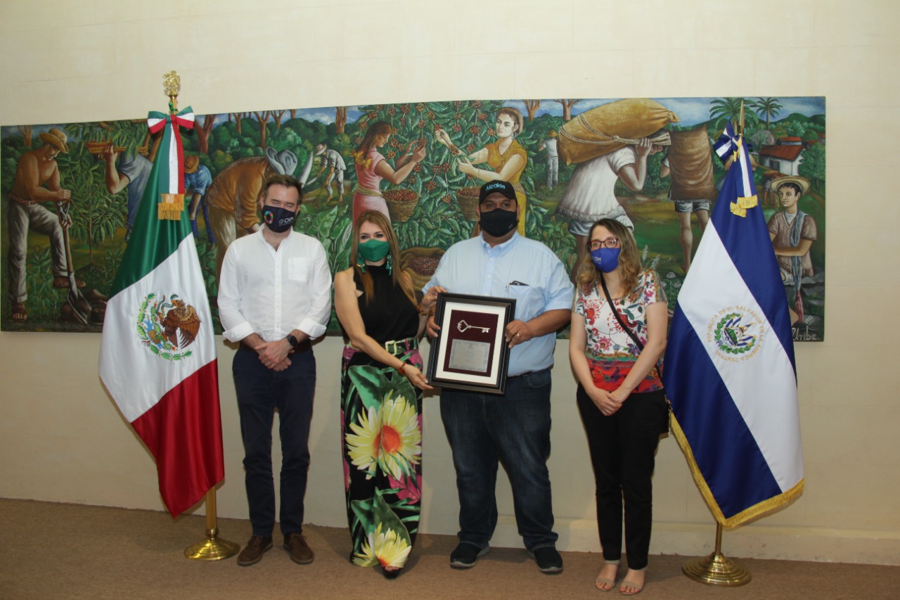 Tapachula, Chiapas.- En el marco de la declaración de Ciudades Hermanas entre Tapachula, Chiapas y Santa Ana, El Salvador, la presidenta municipal Rosa Irene Urbina Castañeda hizo entrega de las Llaves de la Ciudad a su homólogo, Gustavo Acevedo Berganza.