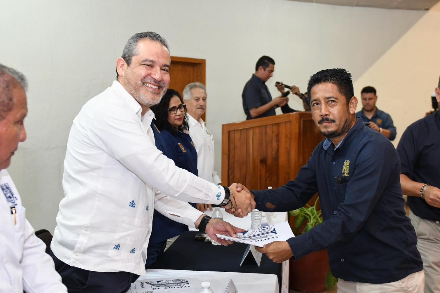 Tapachula, Chiapas. – 182 trabajadores de base, pertenecientes al Sindicato de Trabajadores Administrativos (STAUNACH), Sede Tapachula, recibieron de manos del rector Carlos Faustino Natarén Nandayapa los nombramientos que dan cumplimiento a la Cláusula Novena del convenio relacionado del Contrato Colectivo de Trabajo.
