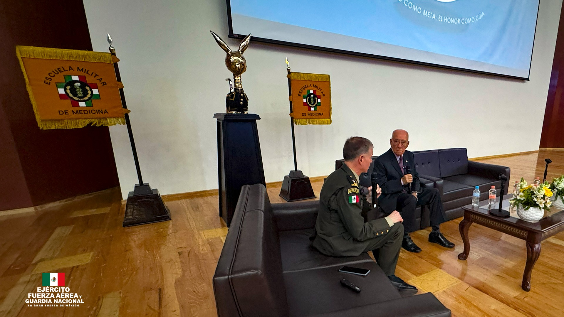 El General Brigadier Retirado Médico Cirujano, Ángel Porfirio Cervantes Pérez , exdirector y autor del Himno de la Escuela Médico Militar , impartió una conferencia a cadetes de la Escuela Militar de Medicina en las instalaciones del Centro Militar de Ciencias de la Salud (CEMICSA) , en Lomas de Sotelo, Ciudad de México. El encuentro tuvo como objetivo reforzar el conocimiento de los futuros médicos militares y reafirmar su compromiso con la salud de los integrantes del Ejército Mexicano, la Fuerza Aérea Mexicana y la Guardia Nacional , así como de sus derechoshabientes. Durante la ponencia, Cervantes Pérez compartió su experiencia en el ámbito de la medicina militar , destacando la importancia de la disciplina, la vocación de servicio y la responsabilidad que implica el ejercicio de esta profesión dentro de las Fuerzas Armadas.