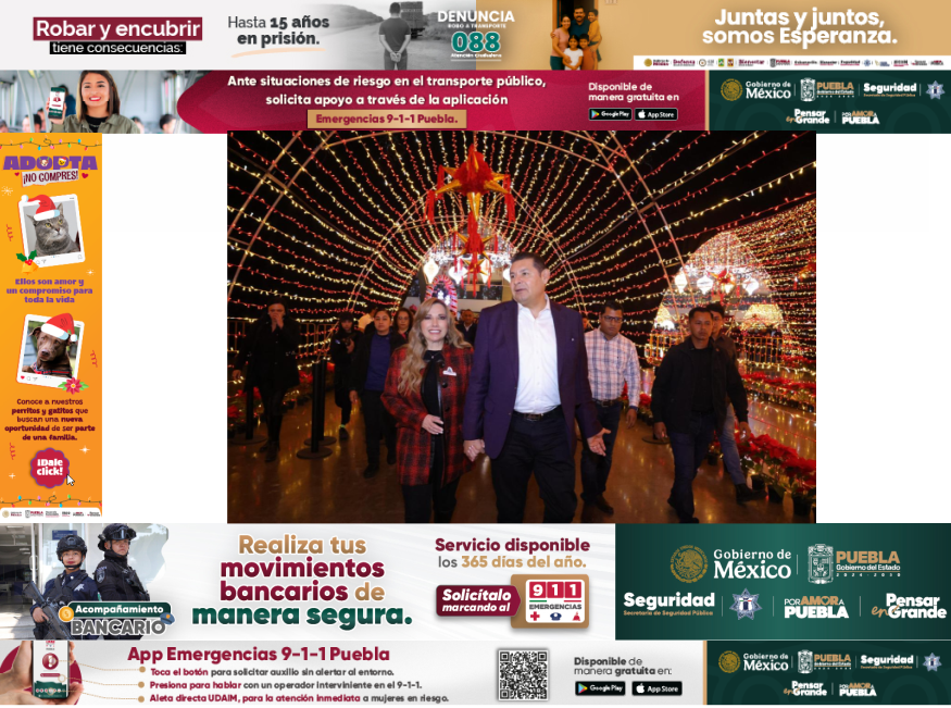 El gobernador de Puebla, Alejandro Armenta, inauguró el Festival Navideño 2025 acompañado de su esposa, Ceci Arellano, y sus hijos Alex, Ceci y Cristy. Este evento gratuito se realiza en un espacio techado de 30 mil metros cuadrados en la zona histórica de Los Fuertes, garantizando condiciones seguras y cómodas para las familias poblanas durante la temporada invernal.