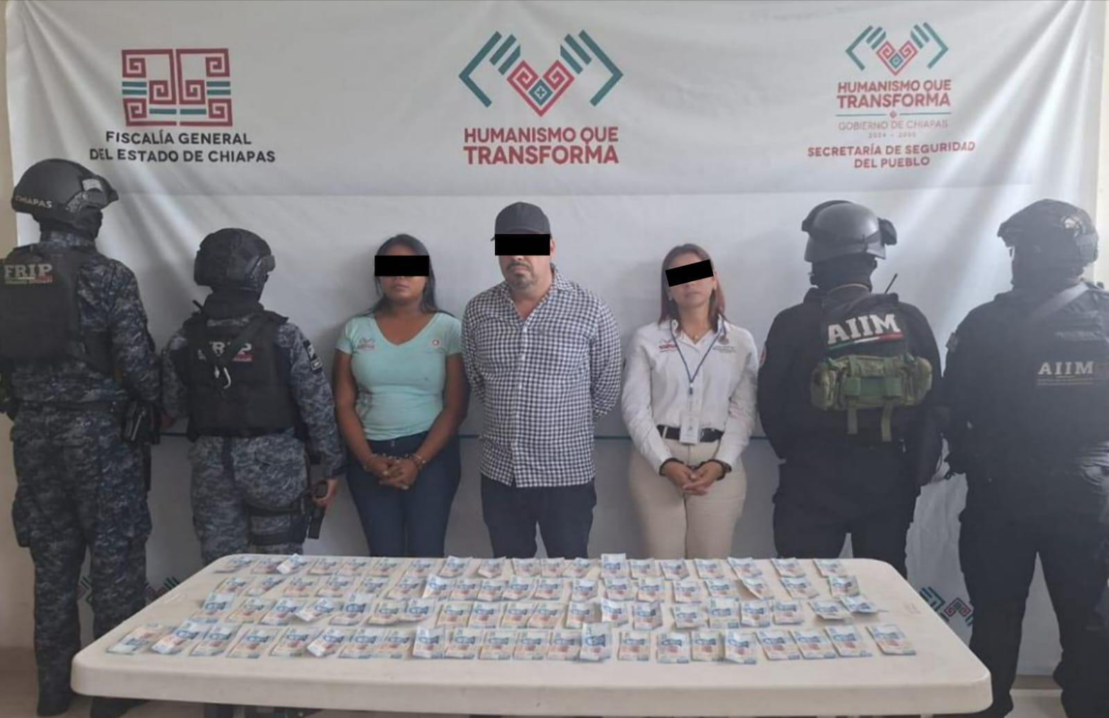 La Fiscalía General del Estado y la Secretaría de Seguridad del Pueblo detuvieron a Pedro «N», Abelina «N» y Lizbeth «N», como presuntos responsables del delito de extorsión agravada, cometido en perjuicio de una persona del sexo masculino de identidad reservada, en la ciudad de Tuxtla Gutiérrez.
