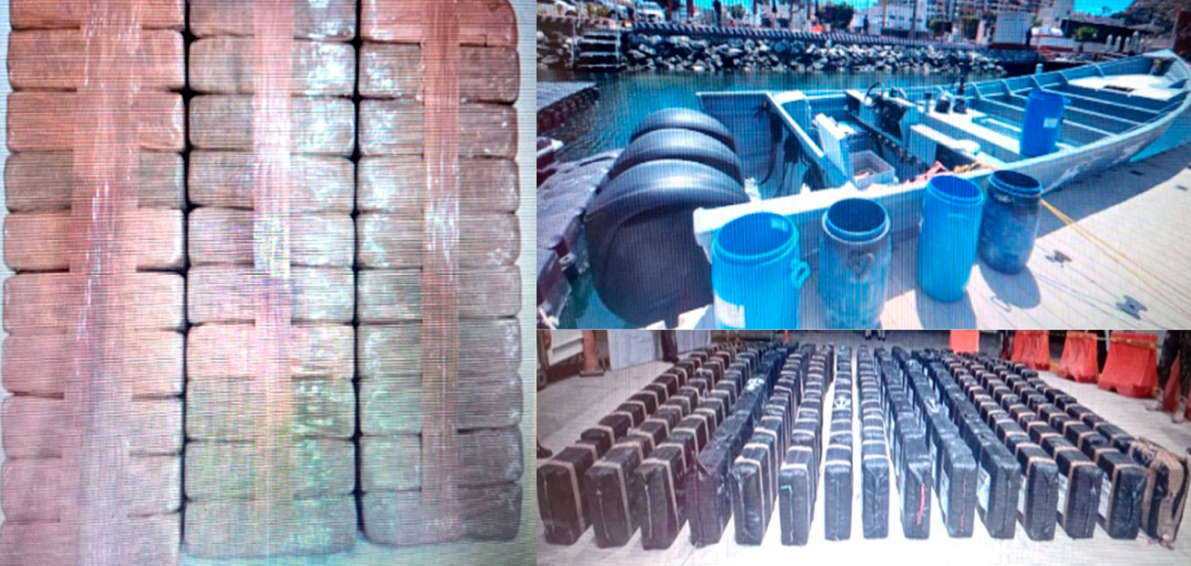Durante la revisión, los efectivos de la Marina hallaron en la embarcación cuatro toneladas y media de clorhidrato de cocaína, distribuidas en cuatro mil 500 paquetes tipo ladrillo. Además, fueron asegurados 878.85 litros de gasolina regular almacenados en 18 bidones plásticos, sin documentación que justificara su posesión o destino.