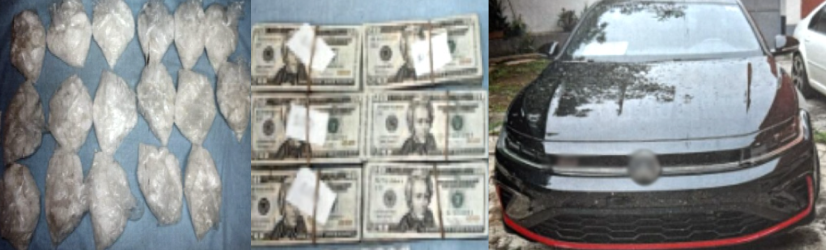De acuerdo con la carpeta de investigación, el imputado fue detenido en Uruapan, Michoacán, luego de que elementos de la Policía Municipal lo interceptaran al intentar evadir un punto de inspección en la colonia La Quinta. Al revisar el vehículo que conducía, se localizó dinero en efectivo —en pesos mexicanos y dólares estadounidenses— además de un cargamento de 97.033 kilogramos de clorhidrato de metanfetamina.