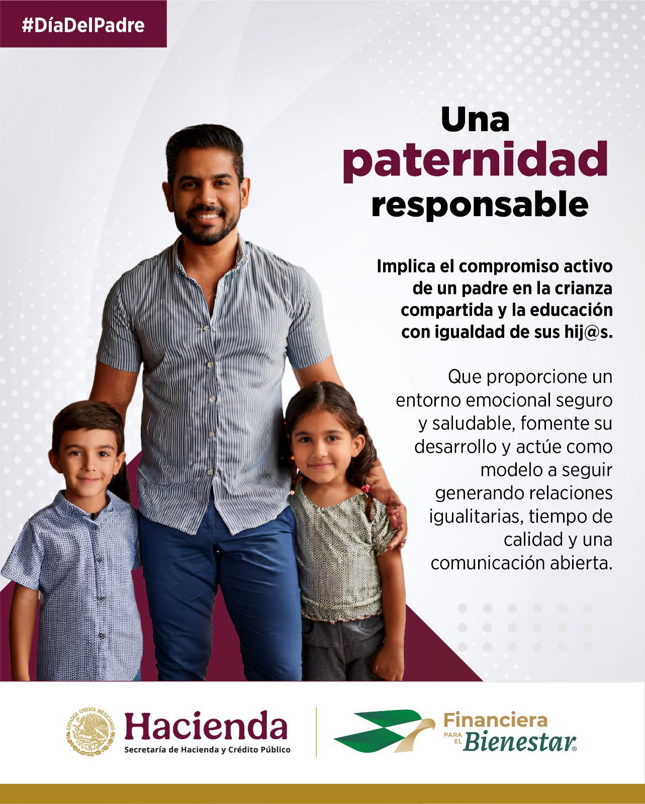 En el marco del Día de la Paternidad Responsable, la Financiera para el Bienestar (Finabien) emitió un mensaje de reconocimiento a todos los padres que ejercen su rol con amor, compromiso y responsabilidad, destacando su contribución a la construcción de un país más justo, equitativo y solidario.
