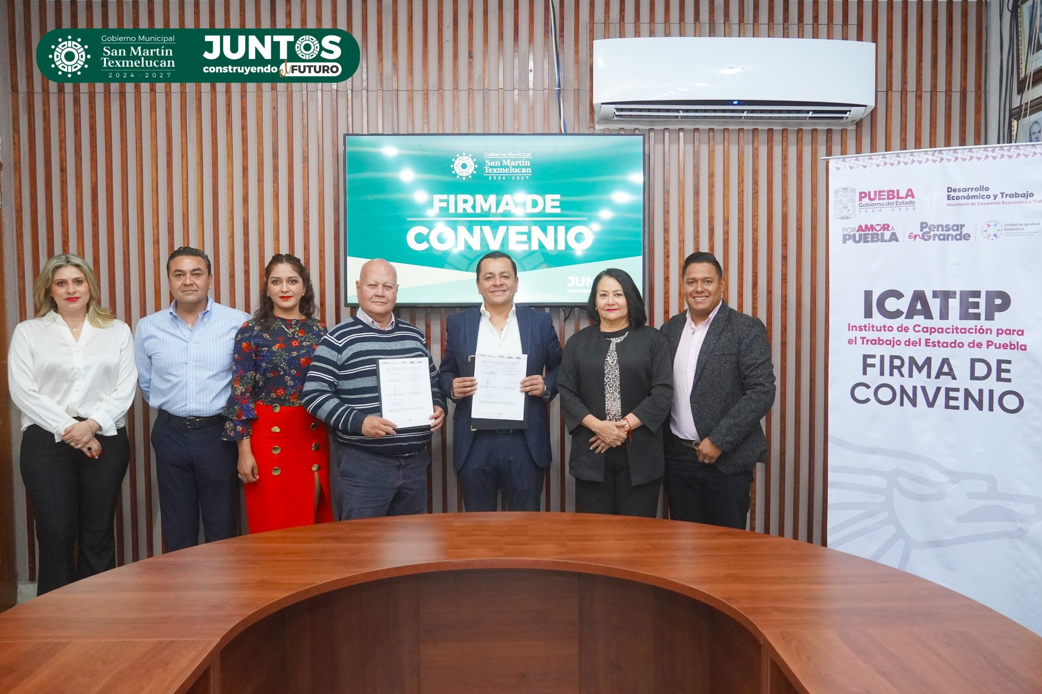 Con el objetivo de impulsar el desarrollo económico y ampliar las oportunidades de empleo para la ciudadanía, el presidente municipal de San Martín Texmelucan, Juan Manuel Alonso, firmó un convenio de colaboración con el Instituto de Capacitación para el Trabajo del Estado de Puebla (ICATEP), Unidad San Martín. Este acuerdo permitirá acercar cursos, talleres y herramientas de formación a la población texmeluquense, fortaleciendo sus habilidades laborales y aumentando su competitividad en el mercado de trabajo.